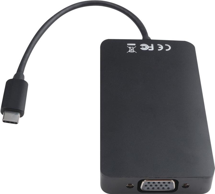 Mit dem USB-C-Adapter von V7 können Sie an jeden PC oder Mac mit USB-C einen Monitor oder Beamer oder andere Geräte mit USB 3.0-, VGA-, Ethernet- oder HDMI-Anschluss anschließen. Ultra-leicht und handlich - der Adapter unterstützt Auflösungen bis 3840x2160p über HDMI bzw. bis 1920x1200p über VGA. Die zwei USB 3.0-Ports ermöglichen Datenübertragungen oder Ladevorgänge mit 5 Gbit/s; abwärtskompatibel mit USB 2.0 Typ-C-Buchse für Datenübertragung (5 Gbit/s) und PD mit einer Leistung von 100 W (20 V/5 A) zum Aufladen. Der Ethernet-Anschluss unterstützt eine Bandbreite von 10/100/1000 Mbit/s.