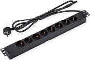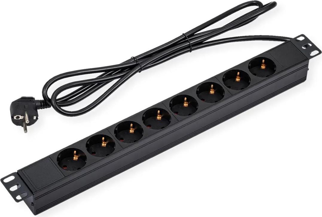 Die Secomp VALUE Steckdosenleiste sorgt für eine zuverlässige Stromverteilung für Ihre Geräte. Mit ihrem robusten Design eignet sich diese Steckdosenleiste sowohl für den privaten als auch für den geschäftlichen Gebrauch. Sie verfügt über ein integriertes 1,8 m langes Netzkabel, das Flexibilität bei der Anordnung gewährleistet und gleichzeitig den nahtlosen Anschluss mehrerer Geräte ermöglicht. Ausgestattet mit 8 Ausgangsanschlüssen vom Typ CEE 7/3 bietet sie eine ausreichende Leistungskapazität von 4000 W. Die um 45° abgewinkelten Steckdosen verbessern die Zugänglichkeit und erleichtern das Anschließen von Geräten auch auf engstem Raum. Dieses Produkt ist für die Montage in einem 19-Zoll-Rack konzipiert und eignet sich perfekt für die Optimierung der Arbeitsraumorganisation.