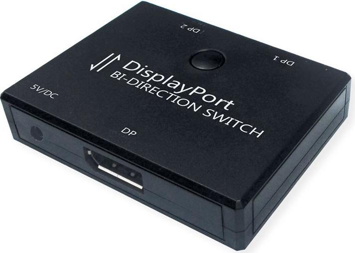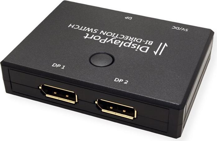 Lassen Sie den Video-Output von zwei DisplayPort-Quellen wechselweise auf einem 4K Monitor, TV oder Projektor darstellen. Oder Sie lassen den Video-Output einer DisplayPort-Quelle wechselweise auf zwei verschiedenen Geräten anzeigen. • Anwendungsbeispiel Switch 2:1: Ein LCD-Monitor wird wechselweise von zwei verschiedenen DisplayPort-Quellen wie z. B. DVD-Player oder Notebook gespeist. Per Knopfdruck kann die gewünschte Quelle angewählt werden. • Anwendungsbeispiel Switch 1:2: Ein Besprechungs-Teilnehmer lässt sein Bild wechselweise auf einem lokal angeschlossenen Bildschirm oder einem Projektor anzeigen. Per Knopfdruck kann der gewünschte DisplayPort-Ausgang angewählt werden. Die Umschaltung erfolgt mittels Drucktaste am Switch. • Die Installation ist einfach - keine Software, nur Kabel anschließen • 4K Auflösung: bis zu 4320 x 2160 @ 60 Hz - abhängig von den angeschlossenen Geräten • Schwarzes Metallgehäuse • HDCP unterstützt.