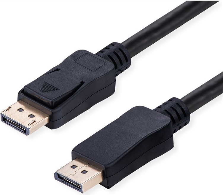 VALUE DisplayPort Kabel mit beidseitigem DP-Anschluss für das Verbinden eines Ultrabooks, Notebooks/Laptops oder PCs mit einem Monitor, TV, Beamer oder Projektor - für Bildschirmübertragungen in exzellenter Qualität mit einer 10K Auflösung von bis zu 10240x4320 @60Hz! • DisplayPort ist ein universeller Verbindungsstandard für die Übertragung von Bild- und Tonsignalen, der in der Computerbranche, der Industrie und der modernen Hausverkabelung weithin bekannt und geschätzt ist. Die Anwendungen umfassen hauptsächlich den Anschluss von Monitoren oder Projektoren an Computer, Notebooks/Laptops, Ultrabooks, NUCs und ähnliche Geräte • DisplayPort v2.1 unterstützt Display Stream Compression 1.2a (DSC), Forward Error Correction und den HDR10-Standard ohne Kompression • DP v2.1 kann eine maximale Auflösung von 10K (10240x4320) @60Hz oder 4K (3840x2160) @120Hz erreichen • Das praktische Stecker-Design verhindert das Herausrutschen des Kabels aus der DisplayPort-Buchse und garantiert eine stabile Videoübertragung.
