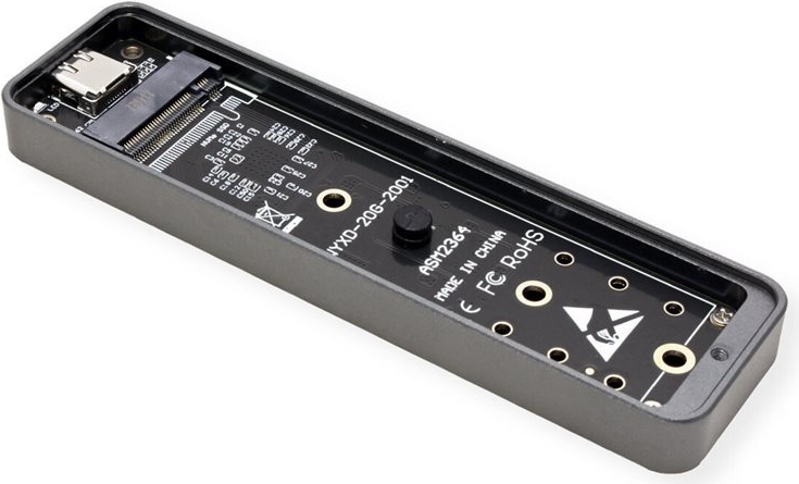 Besonders schmales Leergehäuse aus mattem Aluminium für M.2 SSDs, zum Anschluss über USB 3.1 / USB 3.2 Gen 2 Typ C • Leergehäuse für M.2 SSDs mit USB Typ C Anschluss • Externe Schnittstelle: USB Typ C • Kompatibel zu USB 3.1 / USB 3.2 Gen 2 mit Datenübertragungsraten von bis zu 20 Gbit/s • Unterstützt M.2 SSDs 2242, 2260, 2280 (M key) • Matt silberfarbenes Aluminiumgehäuse.