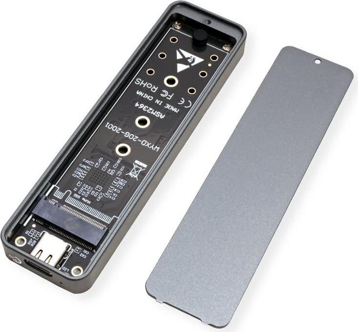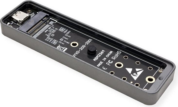 Besonders schmales Leergehäuse aus mattem Aluminium für M.2 SSDs, zum Anschluss über USB 3.1 / USB 3.2 Gen 2 Typ C Leergehäuse für M.2 SSDs mit USB Typ C Anschluss Externe Schnittstelle: USB Typ C Kompatibel zu USB 3.1 / USB 3.2 Gen 2 mit Datenübertragungsraten von bis zu 20 Gbit/s Unterstützt M.2 SSDs 2242, 2260, 2280 (M key) Matt silberfarbenes Aluminiumgehäuse.