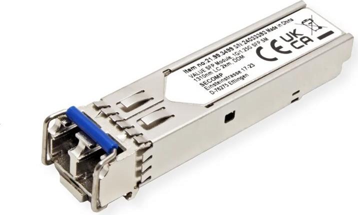 Das Secomp VALUE SFP (Mini-GBIC) Transceiver-Modul bietet zuverlässige Konnektivität für verschiedene Netzwerkanwendungen. Mit einer Datenübertragungsrate von 1,25 Gbit/s und Unterstützung für Gigabit-Ethernet gewährleistet dieses Plug-in-Modul eine effiziente Datenübertragung über Entfernungen von bis zu 2 km. Es arbeitet in einem breiten Temperaturbereich von 0 °C bis 70 °C und ist somit für eine Vielzahl von Umgebungen geeignet. Das SFP-Modul wurde für eine einfache Integration entwickelt und verfügt über digitale Diagnosefunktionen (DDM). Es ist hot-plug-fähig und ermöglicht so eine nahtlose Installation und einen Austausch ohne Unterbrechung des Betriebs. Ausgestattet mit zwei LC/LX-Singlemode-Anschlüssen bietet es eine robuste kabelgebundene Konnektivität und gewährleistet eine zuverlässige Netzwerkleistung.