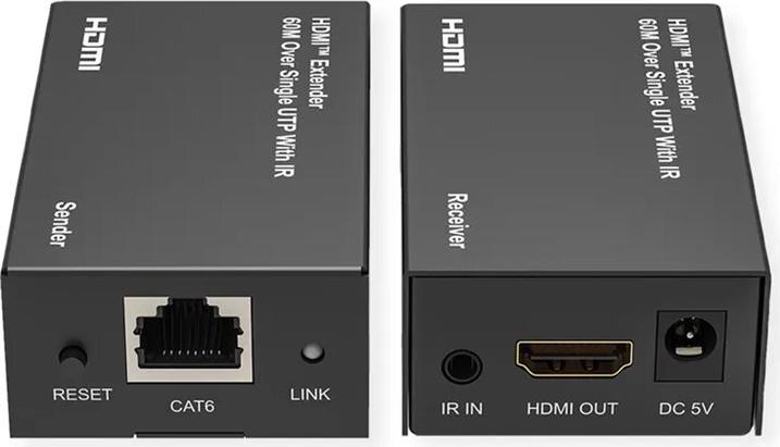 Diese VALUE HDMI Verlängerung überträgt ein HDMI-Signal von einem Quellgerät wie einem DVD-Player, einem PC/Laptop oder einer TV-Box via Twisted-Pair-Kabel (Kat.6 oder höher) an ein Anzeigegerät, wie ein TV-Gerät, einen Monitor oder Beamer/Projektor - und das über bis zu 60 m! • Zur Verlängerung der Strecke zwischen Quell- und Anzeigegerät auf bis zu 60 Meter • Max. Auflösung von 1920 x 1080 @60Hz (1080p) - bei der Verwendung eines Kat.6 (TP) Kabels • Unterstützt verlustfreie unkomprimierte A/V-Signalübertragung • Automatische Anpassung des Signals an die Kabellänge nach Betätigung der 'RESET'-Taste am Empfänger • IR-Signalübertragung zur Fernbedienung des Quellgeräts • Unterstützt 3D-Videoformat • Sowohl der Sender als auch der Empfänger werden über ein Netzteil mit DC 5V versorgt, der Empfänger wird vom Sender gespeist Hinweis: Es gibt 2 RESETs auf diesem Extender-Kit, einen auf dem 'Sender' und einen auf dem 'Empfänger'. RESET am Sender: Funktion als 720p/1080p Standard-EDID-Einstellungsänderung durch 3-5s langes Drücken RESET am Receiver: Funktion als Neustart.