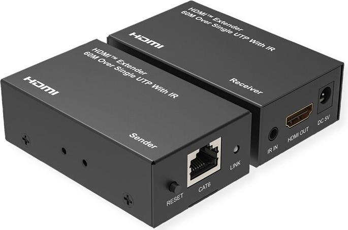 Diese VALUE HDMI Verlängerung überträgt ein HDMI-Signal von einem Quellgerät wie einem DVD-Player, einem PC/Laptop oder einer TV-Box via Twisted-Pair-Kabel (Kat.6 oder höher) an ein Anzeigegerät, wie ein TV-Gerät, einen Monitor oder Beamer/Projektor - und das über bis zu 60 m! Zur Verlängerung der Strecke zwischen Quell- und Anzeigegerät auf bis zu 60 Meter Max. Auflösung von 1920 x 1080 @60Hz (1080p) - bei der Verwendung eines Kat.6 (TP) Kabels Unterstützt verlustfreie unkomprimierte A/V-Signalübertragung Automatische Anpassung des Signals an die Kabellänge nach Betätigung der 'RESET'-Taste am Empfänger IR-Signalübertragung zur Fernbedienung des Quellgeräts Unterstützt 3D-Videoformat Sowohl der Sender als auch der Empfänger werden über ein Netzteil mit DC 5V versorgt, der Empfänger wird vom Sender gespeistHinweis:Es gibt 2 RESETs auf diesem Extender-Kit, einen auf dem 'Sender' und einen auf dem 'Empfänger'.RESET am Sender: Funktion als 720p/1080p Standard-EDID-Einstellungsänderung durch 3-5s langes DrückenRESET am Receiver: Funktion als Neustart.