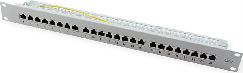 19" Patchpanel 1HE zum Einbau in 19" Schränke, inkl. Einbauwinkel • Das VALUE Kat.6a 19" Patch Panel erfüllt die Kat.6A/Class EA im Permanent Link Standard und ist ideal für 10 Gigabit Ethernet Netzwerke • Rückseitiger Kabelanschluss über LSAplus-Schneidklemmtechnik mit oben aufgedruckter Farbkodierung nach EIA/TIA568 • Gehäuse aus Stahlblech • Farbe: lichtgrau.