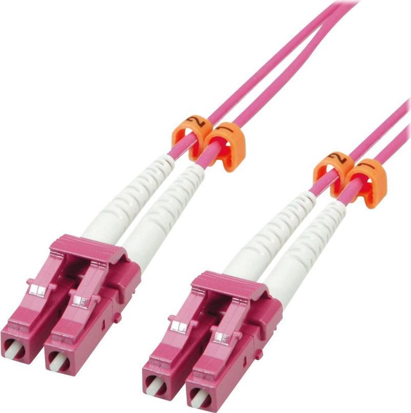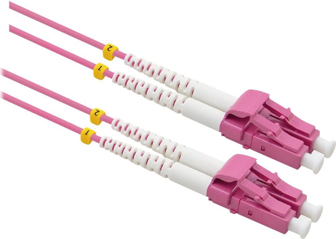 VALUE LWL-Patchkabel in OM4-Qualität mit Low-Loss-Steckern für hoch performante LWL-Verkabelung in bester VALUE-Qualität. • Mit Sicherheit in die Zukunft! Die äusserst hohe Qualität der OM4-Faser und die besonders polierten Stecker mit besonders niedriger Einfügedämpfung sichern eine hervorragende Übertragungsqualität auch bei sehr hohen Bandbreiten. • Die Kabel, mit "Low-Loss"-Steckern konfektioniert, erzielen besonders gute Werte bei Einfügedämpfung und Reflexion. Zum Vergleich: - Typische Dämpfung eines Standard-LC-Steckers: 0,5 dB - Typische Dämpfung eines Low-Loss-LC-Steckers: 0,15 dB • Die OM4 Faser unterstützt für z.B. Ethernet, Fibre Channel und OIF-Anwendungen größere Reichweiten von über 550m bei 10 Gbit/s; sie ist damit besonders geeignet für sehr lange Gebäude- und Campus-Backbones. • Modale Bandbreite: 4700 MHz-km • Diese Kabel werden als Duplex-Kabel mit dem Fasertyp 50/125 µm geliefert • Kabelfarbe: violett.