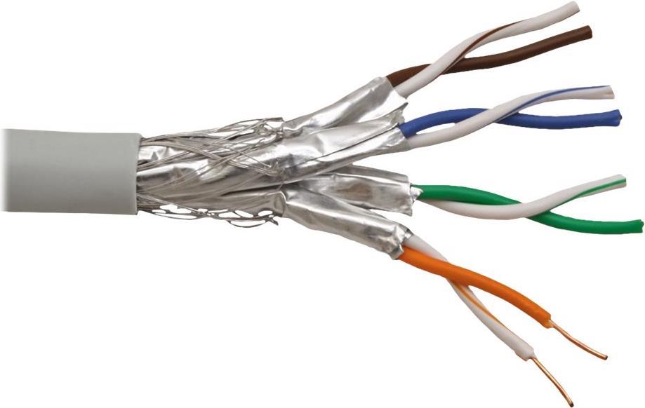 Massivdraht Netzwerk-Installationskabel der Kategorie 7 für strukturierte Gebäudeverkabelung. Die preisgünstige Lösung für Kat.7 Verkabelung. • Doppelt geschirmtes (PiMF) Twisted Pair Installationskabel • Impedanz: 100 Ohm • Farbe: grau • Aufbau: 8 Adern, Kupfer, Massivdraht, paarweise Schirmung in alu-kaschierter Folie, Geflechtschirm • Brandschutzklasse: Dca.