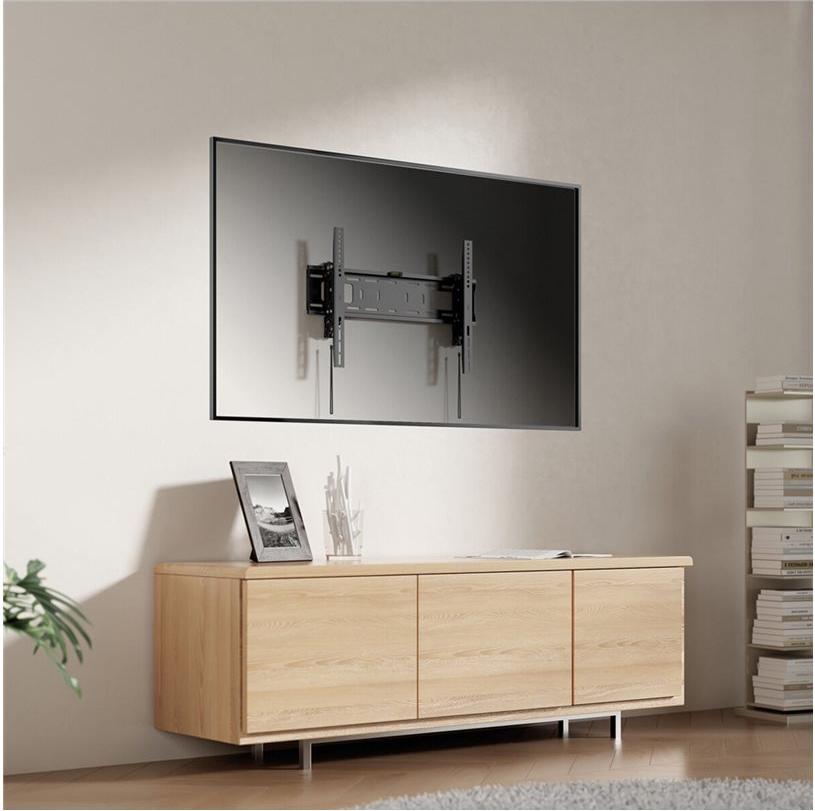 Große TV-Geräte, die auf herkömmlichen neigbaren TV-Wandhalterungen montiert sind, stoßen beim Neigen oft an die Wand. Diese VALUE TV-Wandhalterung hingegen bietet eine besonders große Auszugslänge. Der Abstand zur Wand kann dadurch bis zu 133 mm betragen, so dass große Fernseher vollständig geneigt werden können. Darüber hinaus bietet die Schwenkfunktion einen flexiblen Betrachtungswinkel. • Für Bildschirme von 93,98 - 203,2 cm (37" - 80") • Max. VESA 600x400 • Tragkraft bis zu 75 kg • Neigbar • Wandabstand einstellbar von 72 - 133 mm • Sicherung gegen unbeabsichtigtes Lösen der Montagehaken • Integrierte Wasserwaage • Neigungsbereich: +5° ~ -10° • Schwenkbereich: +5° ~ -5°.