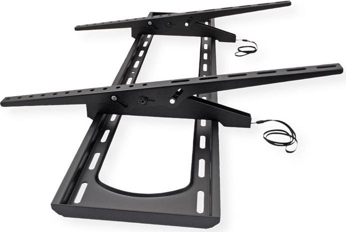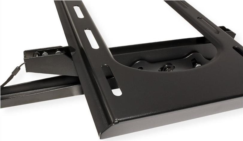 Stabile und neigbare TV Wandhalterung mit gerade mal 80 mm Wandabstand • Für Bildschirme von 60" bis 120" (max. VESA 900x600) • Tragkraft von bis zu 120 kg • Neigbare Aufhängung • Sehr geringer Wandabstand von 80 mm • Sicherung gegen unbeabsichtigtes Lösen der Montagehaken • Integrierte Wasserwaage.