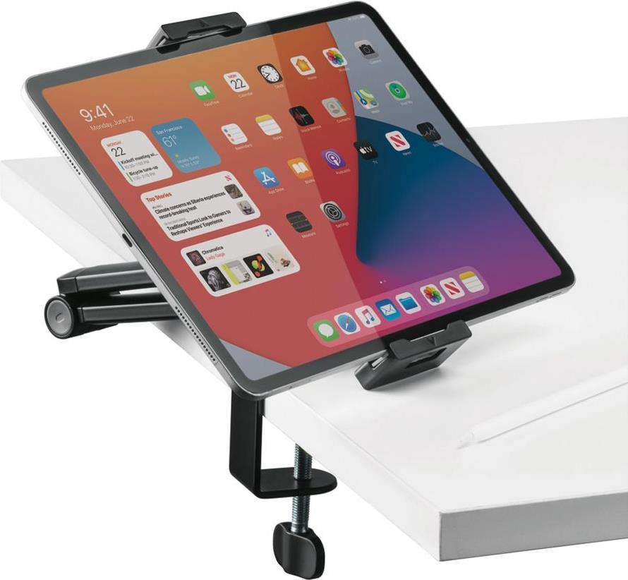 Das Secomp VALUE-Montageset wurde für Tablets mit einer Displaygröße von 4,7 bis 12,9 Zoll entwickelt. Mit einer stabilen Tischhalterung und einer maximalen Tragkraft von 1 kg sorgt dieses Set für Stabilität und Sicherheit für Ihr Gerät. Genießen Sie vollständige Flexibilität mit einer 360°-Drehung sowie Neigungs- und Schwenkverstellungen, die optimale Blickwinkel in jeder Umgebung ermöglichen. Diese universelle Befestigungslösung kombiniert Funktionalität mit einem schlanken Design und ist somit eine Bereicherung für jeden Arbeitsbereich oder jedes Zuhause.