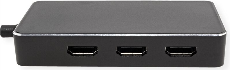 HDMI-Multi-Display-Adapter für mobile Geräte mit USB Typ-C-Anschluss. Verbinden Sie Ihr MacBook, Ultrabook, Notebook/Laptop oder PC mit USB-Typ-C-Anschluss mit bis zu drei HDMI-Displays oder -Projektoren - bei einer maximalen Auflösung von bis zu 3840x2160 @60Hz! • USB 3.1 Typ C zu HDMI Multi-Stream-Kabeladapter (für z.B. MacBook, Ultrabook, Notebook/Laptop oder PC) • Schließen Sie Ihr Gerät mit USB-Typ-C-Anschluss an jedem HDMI-Display oder einen Projektor mit HDMI Anschluss an • Dieser Adapter ermöglicht es Ihnen, Ihr Display auf bis zu drei HDMI-fähige Fernseher oder andere Displays zu spiegeln oder zu erweitern • Tragbares, kompaktes Design • Kein Netzteil erforderlich • Anschlüsse: 3x HDMI Buchsen und 1x Typ-C-Stecker • Max. Auflösung: 3840 x 2160 @60Hz • Kabellänge: ca. 10 cm • Die Quelle muss HBR3 oder DisplayPort 1.4 (Alternate Mode) unterstützen.