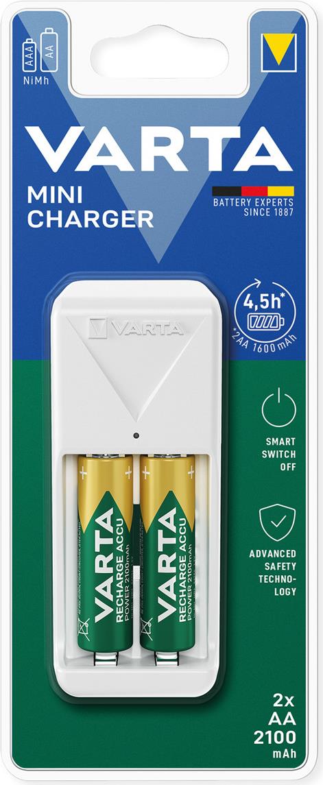 VARTA Mini Charger Ladegerät inkl. 2x AA 2100mAh Akku Zuverlässige Funktionen für hervorragende Ladeergebnisse in Kombination mit einem modernen VARTA-Design bieten bestes Preis-Leistungs-Verhältnis. (57656101451)