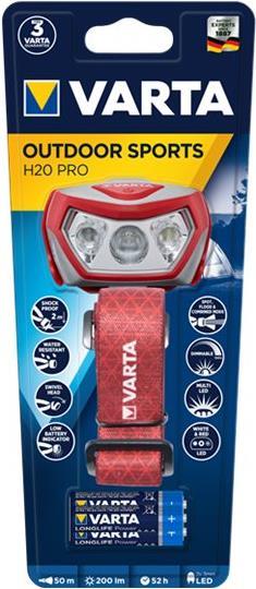 Varta Outdoor Sports H20 Pro - Stirnband-Taschenlampe - Grau - Rot - Acrylnitril-Butadien-Styrol (ABS) - Polycarbonat (PC) - Tasten - IPX4 - LED (17650 101 421)