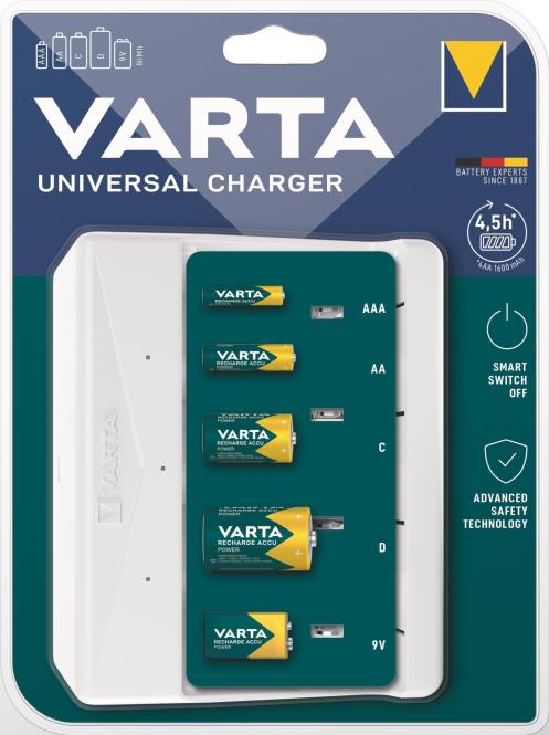 VARTA Universal Charger Ladegerät Zuverlässige Funktionen für hervorragende Ladeergebnisse in Kombination mit einem modernen VARTA-Design bieten bestes Preis-Leistungs-Verhältnis. (57658101401)