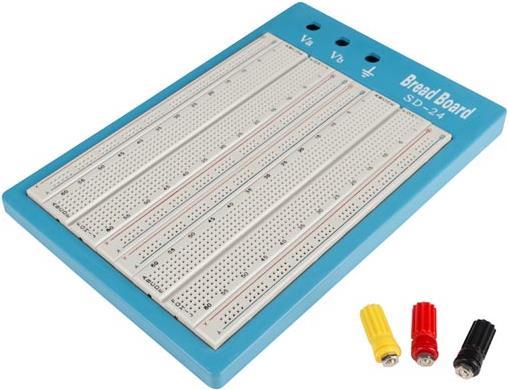 Velleman VTBB4. Verbindungspunktmaterial: Edelstahl, Produktfarbe: Blau, Weiß. Maximale Spannung: 30 V, Stromstärke (maximal): 3 A. Breite: 220 mm, Tiefe: 150 mm, Höhe: 18 mm (VTBB4)