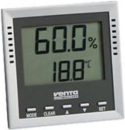 Digital-Thermo-Hygrometer mit Angabe der Raumtemperatur und der relativen Luftfeuchtigkeit.