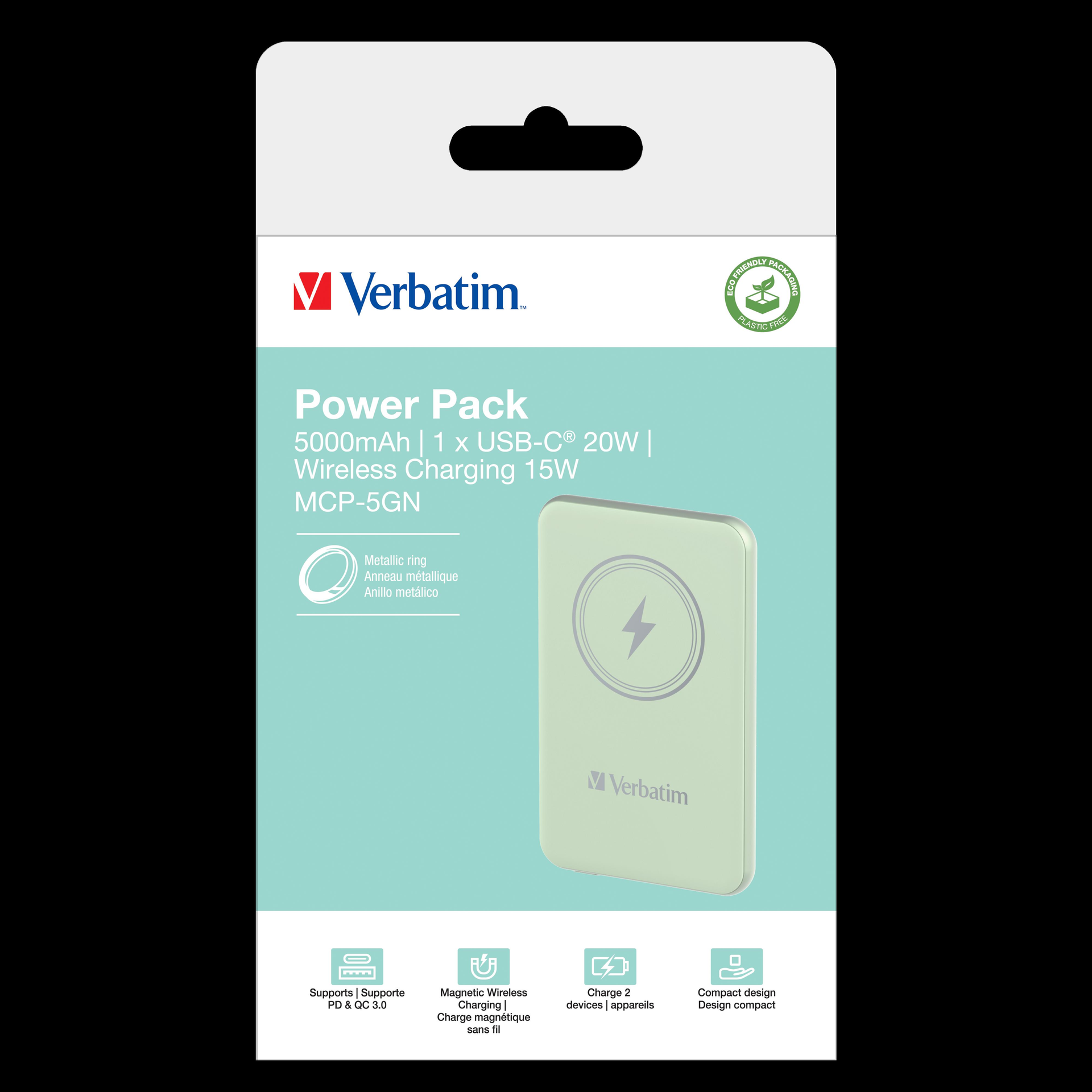 | Produktbeschreibung | Verbatim Charge n Go induktive Power Bank - Magnethalterung - Li-Pol - 24 pin USB-C - 20 Watt |