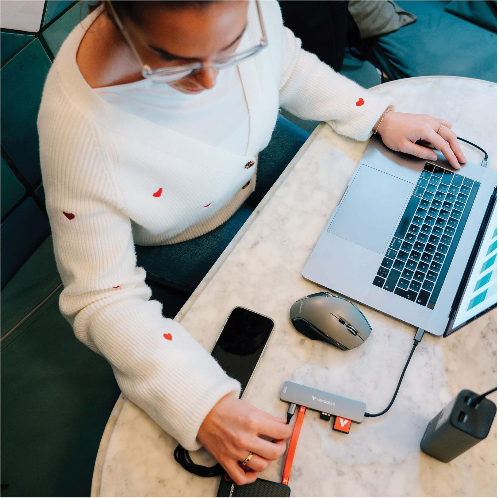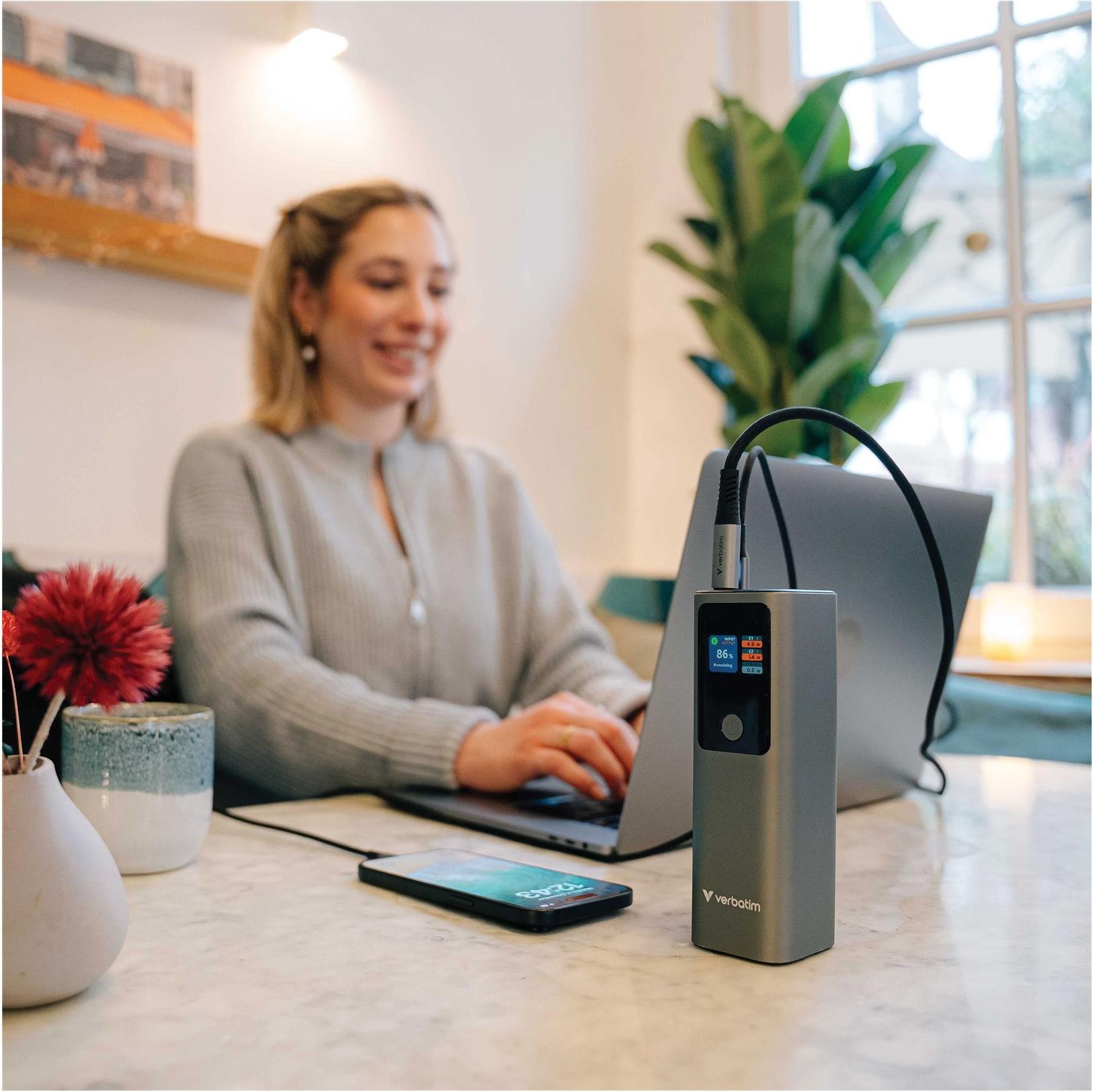 Die kabellose Powerbank „Charge 'n' Go“ von Verbatim ist ein Zubehör für alle, die ihre Geräte auch unterwegs aufladen müssen. Mit einer Kapazität von 27.000 mAh kann diese Powerbank drei Geräte gleichzeitig aufladen und sorgt so dafür, dass Sie überall in Verbindung bleiben. Das benutzerfreundliche Design umfasst eine magnetische Halterung, mit der Sie Ihr Gerät während des Ladevorgangs einfach befestigen können. Die Schnellladetechnologie sorgt dafür, dass Ihre Geräte schnell die benötigte Energie erhalten, was diese Powerbank zu einem zuverlässigen Begleiter für Multitasking-Nutzer macht.