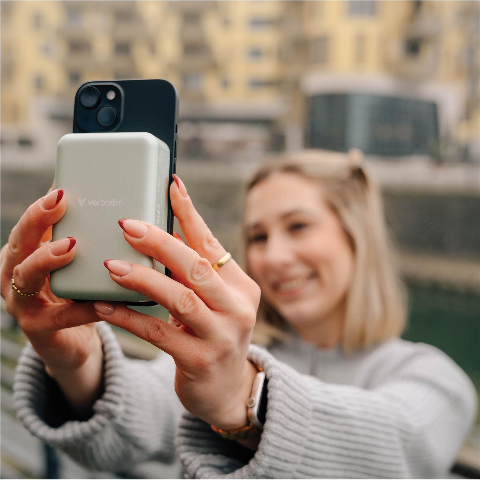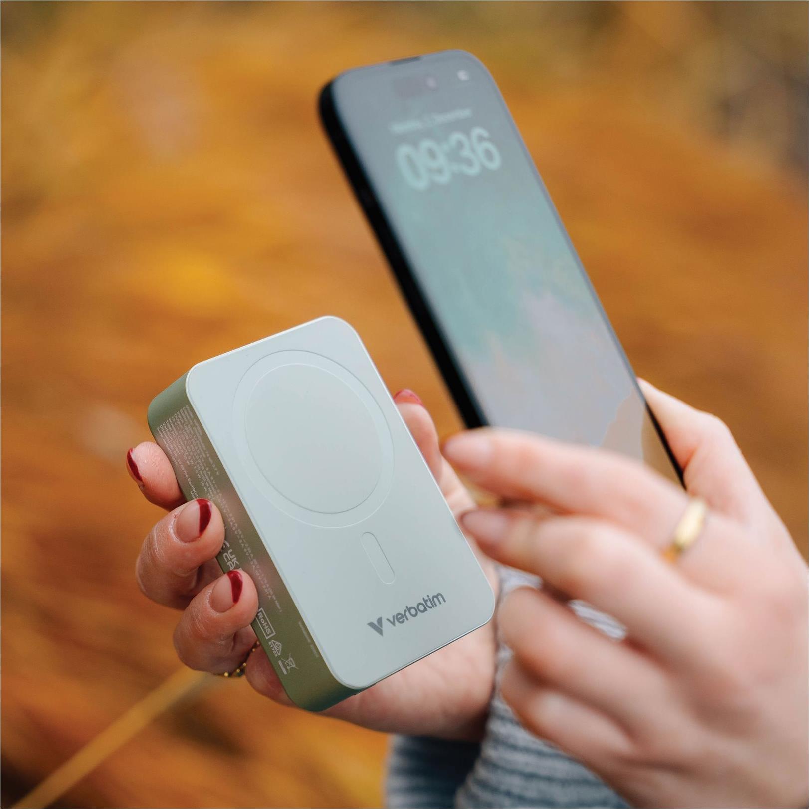 Die kabellose Powerbank "Charge 'n' Go Essentials" von Verbatim wurde für mobile Enthusiasten entwickelt, die unterwegs eine zuverlässige Stromquelle benötigen. Mit einer robusten Akkukapazität von 20.000 mAh sorgt diese Powerbank dafür, dass Geräte ohne Unterbrechungen aufgeladen werden können. Ausgestattet mit einem USB-C-zu-USB-C-Kabel bietet sie effizientes und bidirektionales Laden und ist damit ein vielseitiges Zubehör für Mobiltelefone. Das magnetische Design sorgt für zusätzlichen Komfort beim Befestigen der Geräte während des Ladevorgangs.