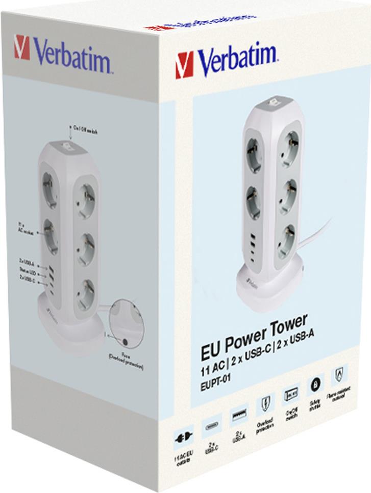 Der Verbatim EUPT-01 ist ein vielseitiger 15-in-1-Euro-Mehrfachstecker, der eine praktische Lösung für die gleichzeitige Stromversorgung mehrerer Geräte bietet. Mit einer Gesamtleistung von 3600 W sorgt er über seine 11 Steckdosen vom Typ F und zwei USB-Anschlüsse vom Typ A und USB-C für eine zuverlässige Energieverteilung. Das integrierte Design und die Länge von 2 m des Kabels bieten Flexibilität bei der Platzierung und machen es ideal für zu Hause oder im Büro. Es verfügt über eine flammhemmende Polycarbonat-Konstruktion und einen Überlastschutz für zusätzliche Sicherheit, während der Ein-/Aus-Schalter eine bequeme Steuerung der angeschlossenen Geräte ermöglicht. Der Betriebstemperaturbereich von 0 °C bis 35 °C gewährleistet eine optimale Leistung unter typischen Bedingungen und ermöglicht ein nahtloses Erlebnis für die Benutzer.