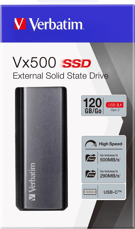 | Produktbeschreibung | Verbatim Vx500 - Solid-State-Disk - 120 GB - USB 3.1 Gen 2 |