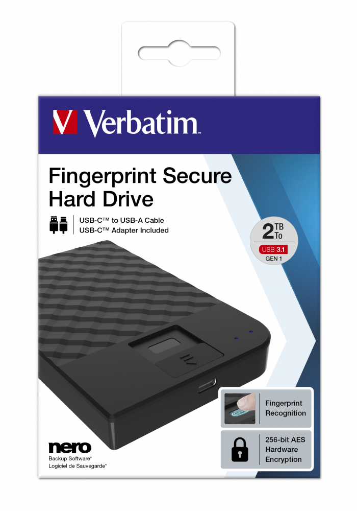 | Produktbeschreibung | Verbatim Fingerprint Secure - Festplatte - 2 TB - USB 3.1 Gen 1 |