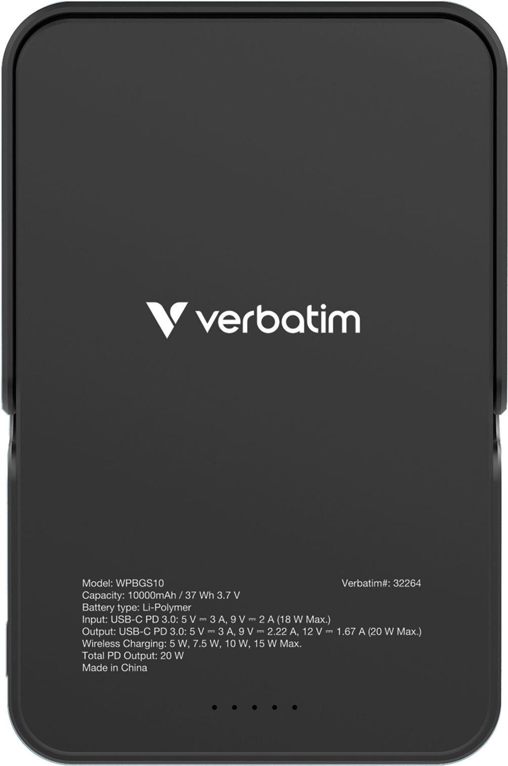 Die kabellose Powerbank "Charge 'n' Go" von Verbatim wurde entwickelt, um Ihre Geräte bequem und effizient mit Strom zu versorgen. Mit einer robusten Lithium-Polymer-Akkuleistung von 10.000 mAh sorgt sie dafür, dass Ihr Tablet und Ihr Mobiltelefon den ganzen Tag über aufgeladen bleiben. Diese Powerbank bietet vielseitige Lademöglichkeiten mit Power Delivery-Technologie, einer maximalen Ausgangsleistung von 20 W und Unterstützung für verschiedene Spannungsstufen, darunter 5 V, 9 V und 12 V.