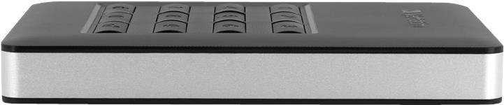 Die AES 256-Bit-Hardware-Verschlüsselung sichert alle Daten auf dem Laufwerk nahtlos und in Echtzeit. Die eingebaute Tastatur dient der Zahlencodeeingabe. Die Festplatte speichert Passwörter nicht auf dem Computer oder auf dem flüchtigen Speicher des Systems und ist daher wesentlich sicherer als eine Softwareverschlüsselung. Wenn sie in die falschen Hände gelangt, wird die Festplatte gesperrt und muss nach 20 fehlgeschlagenen Passworteingaben neu formatiert werden.