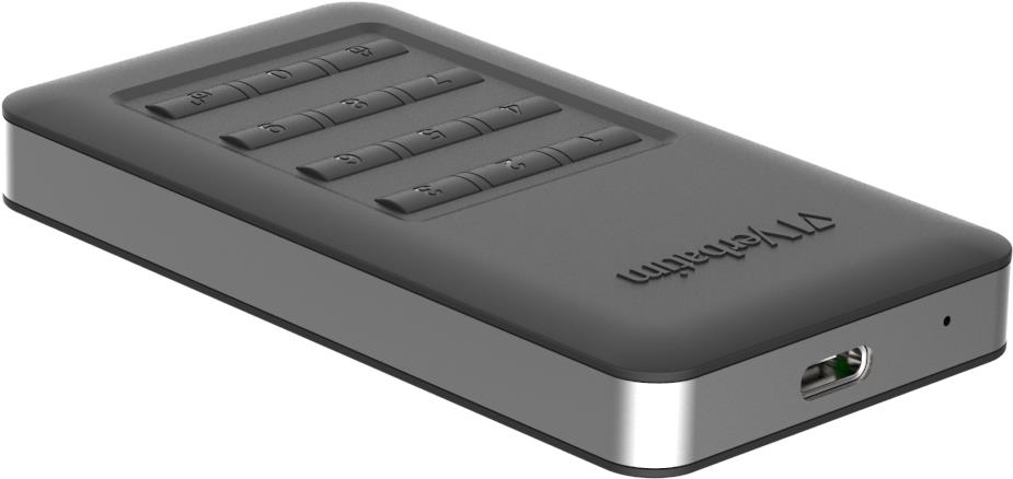 Die AES 256-Bit-Hardware-Verschlüsselung sichert alle Daten auf dem Laufwerk nahtlos und in Echtzeit. Die eingebaute Tastatur dient der Zahlencodeeingabe. Die Festplatte speichert Passwörter nicht auf dem Computer oder auf dem flüchtigen Speicher des Systems und ist daher wesentlich sicherer als eine Softwareverschlüsselung. Wenn sie in die falschen Hände gelangt, wird die Festplatte gesperrt und muss nach 20 fehlgeschlagenen Passworteingaben neu formatiert werden.