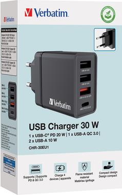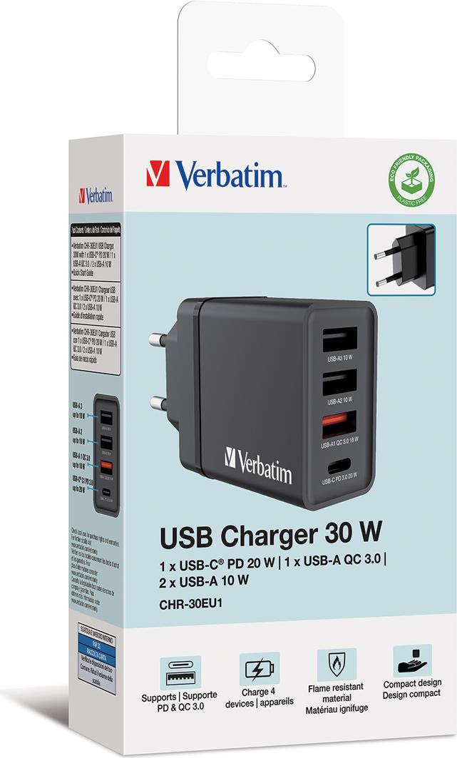 | Produktbeschreibung | Verbatim Netzteil - 24 pin USB-C, 3 x USB Typ A - 30 Watt |