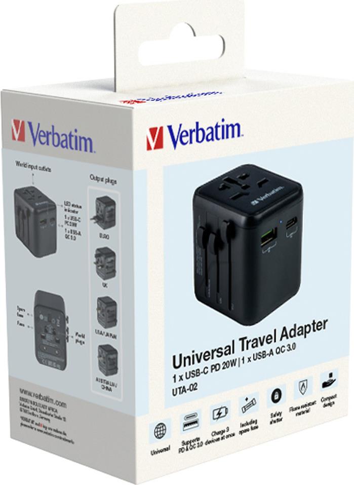 • Verbatim UTA-02 Universal Reisestecker & USB-C/A Charger 20 W (49544)