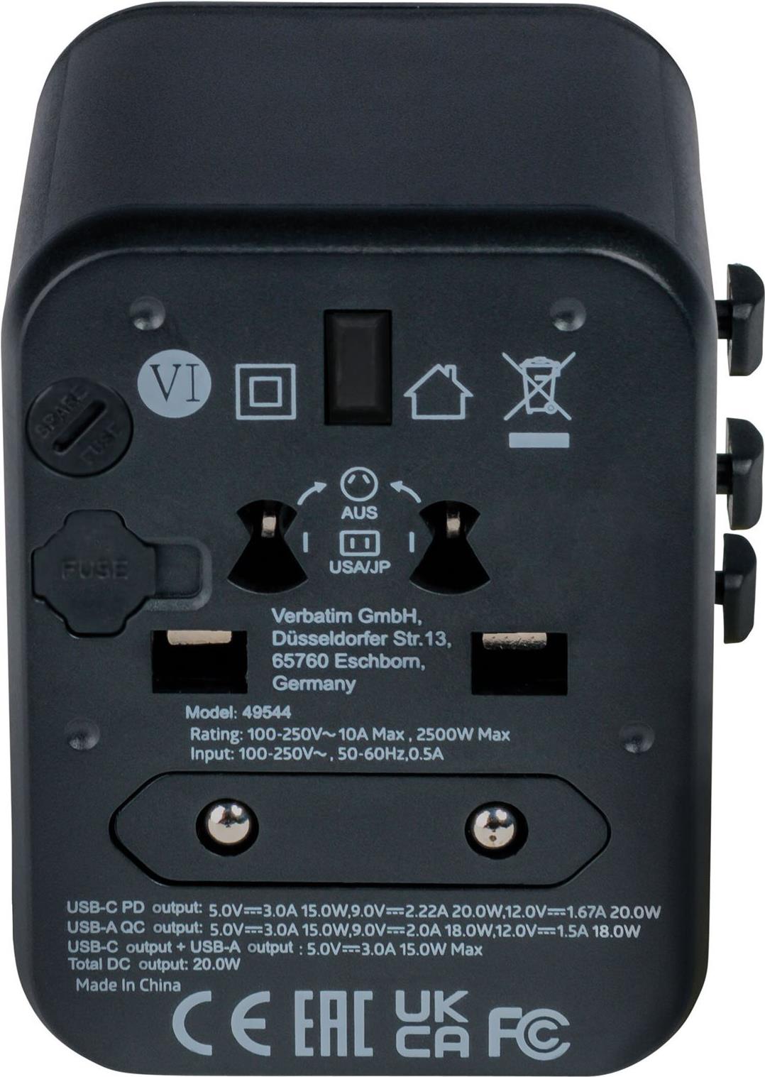 Verbatim UTA-02 Universal Reisestecker & USB-C/A Charger 20 W (49544)