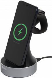 Laden Sie Ihre Apple Watch und Ihr iPhone (8 oder höher) oder ein anderes Qi-zertifiziertes, kabelloses Ladegerät mit der 2-in-1-Ladestation von Verbatim auf.