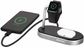 Mit der 3-in-1-Ladestation von Verbatim können Sie alle Ihre Geräte gleichzeitig aufladen.