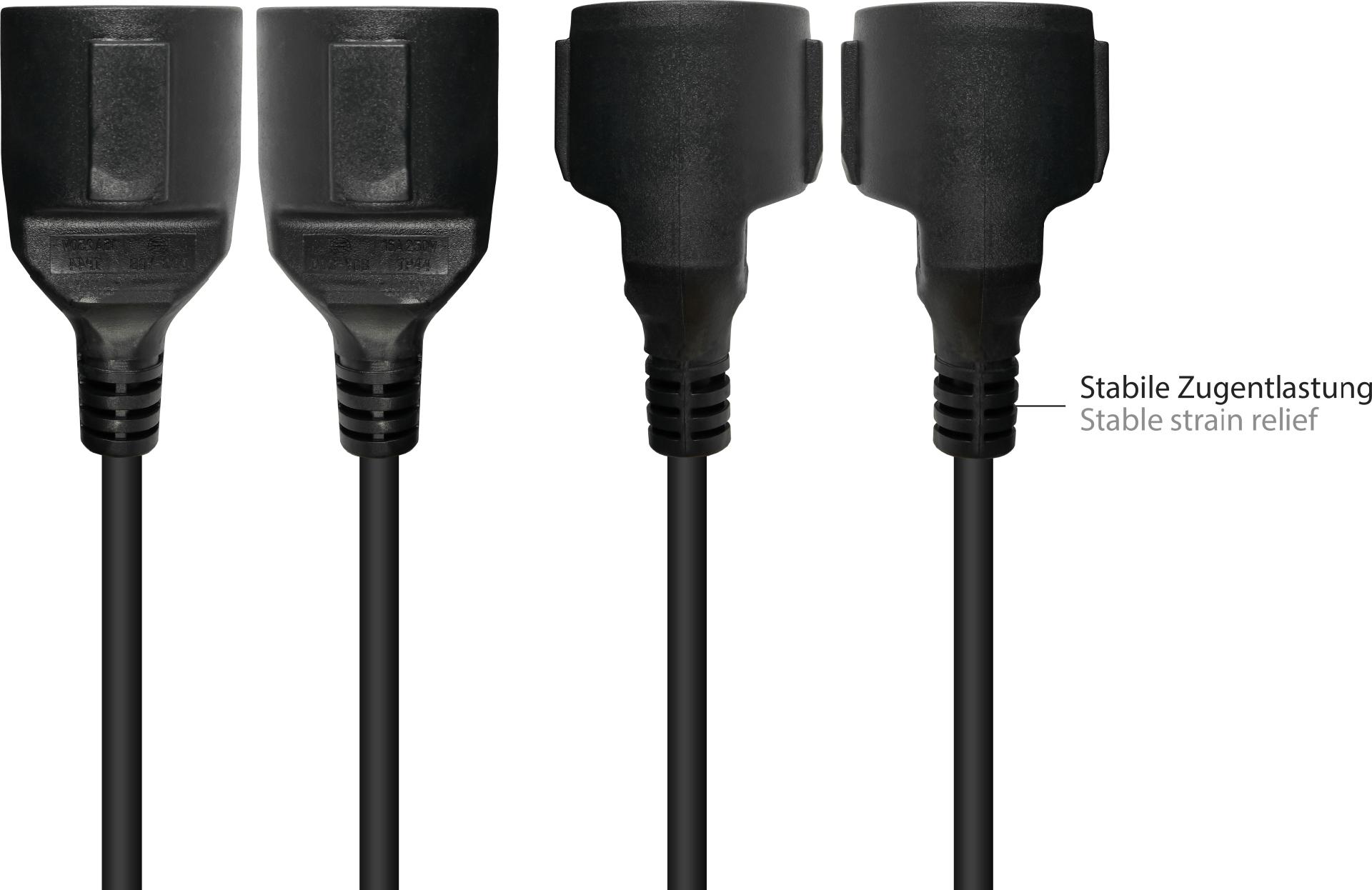 Verlängerung Schutzkontakt-Stecker Typ E+F (CEE 7/7, gewinkelt) an Buchse Typ F (CEE 7/3, gerade), schwarz, 1,50 mm², 10 ...
