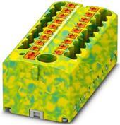 Verteilerblock, Grundklemme mit Einspeisung, Die Blöcke sind untereinander über den Leiterschacht brückbar. Passende Steckbrücken siehe Zubehör, Nennspannung: 450 V, Nennstrom: 24 A, Anschlussart: Push-in-Anschluss, Push-in-Anschluss, Anzahl der Anschlüsse: 19, Querschnitt: 0,14 mm² - 4 mm², AWG: 26 - 12, Breite: 56,5 mm, Höhe: 21,7 mm, Farbe: grün/gelb, Montageart: Fliegend, Direktmontage mit Flansch, kleben