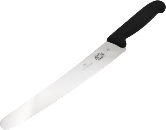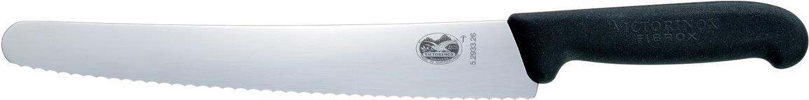 Fibrox ist die Produktlinie professioneller Messer, mit denen Sie zu Hause so effizient kochen können wie Profiköche im Restaurant. Die Fibrox Konditorsäge bietet einen komfortablen, rutschfesten und ergonomischen Griff und überzeugt durch Vielseitigkeit, eine lange Lebensdauer sowie einfaches Schneiden. Eine innovative Biegung zur Erleichterung der Schnittbewegung beim Schneiden von Kuchen, Gebäck und Brot sowie ein extrem scharfer Wellenschliff, mit welchem Sie sauber durch die Kruste schneiden können, ohne das Brot zu zerdrücken, sorgen für vielseitige Einsatzmöglichkeiten. Darüber hinaus kann die Klinge als Spachtel für das Glasieren und Schneiden von Kuchen verwendet werden.