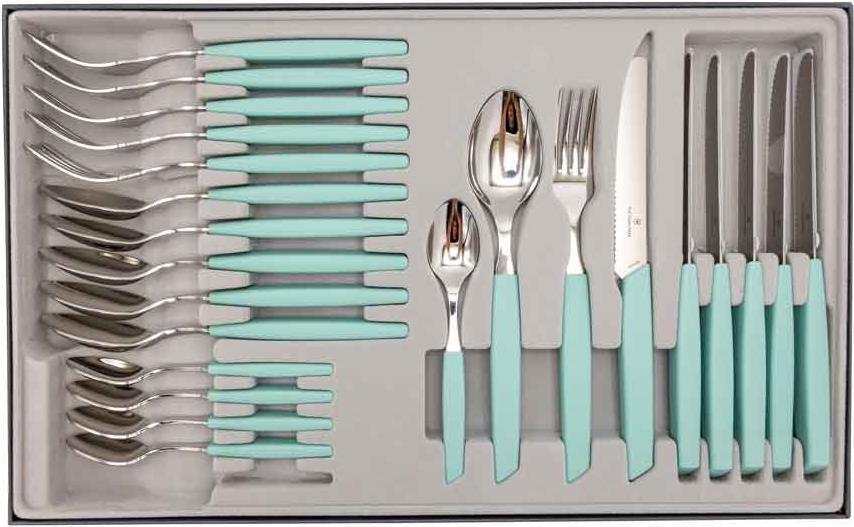 | Set pro Person | Tischgabel, Tischmesser, Esslöffel, Teelöffel |