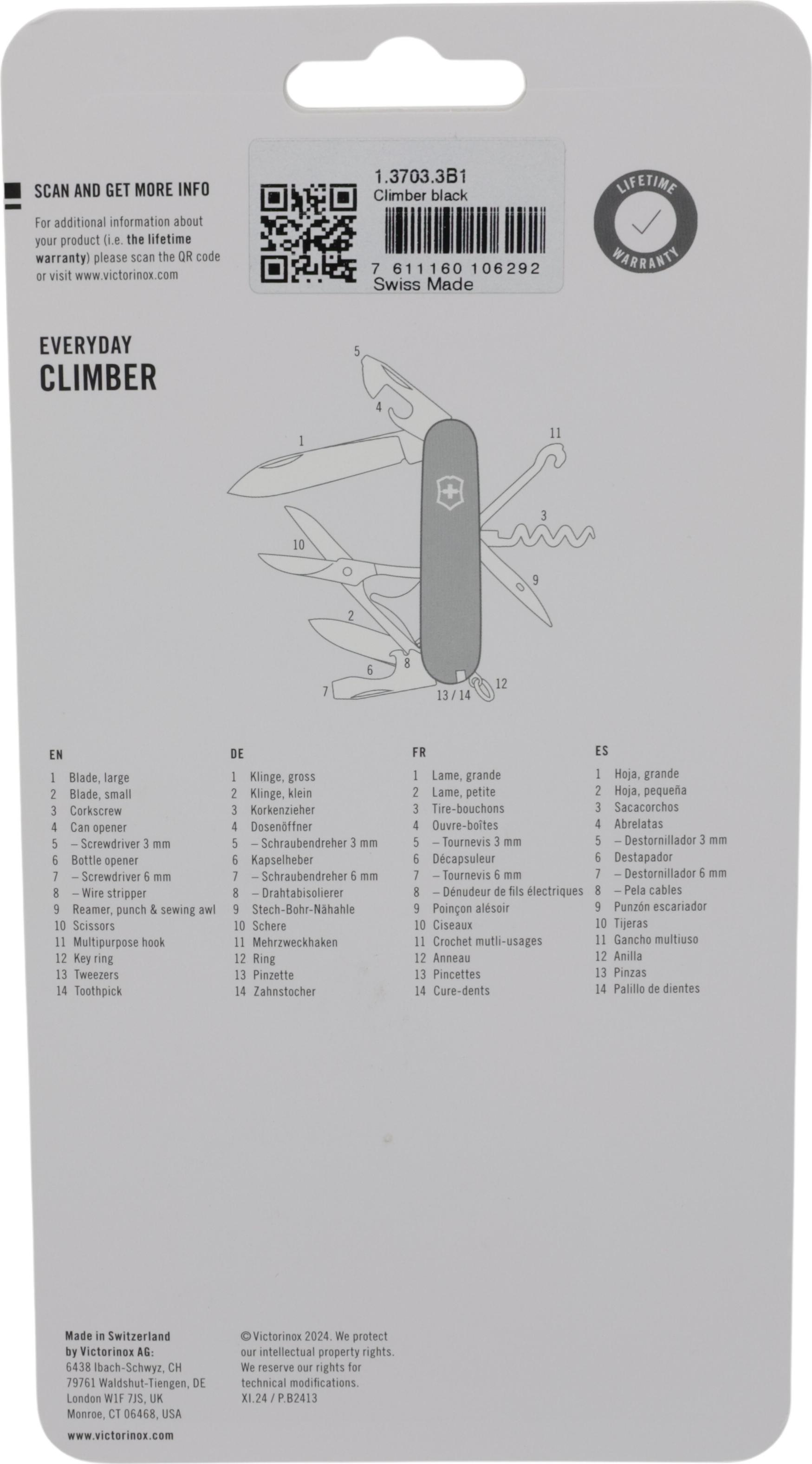 • Victorinox V-1.37 03.3 B1 Taschenmesser Climber, schwarz (V-1.37 03.3 B1)
