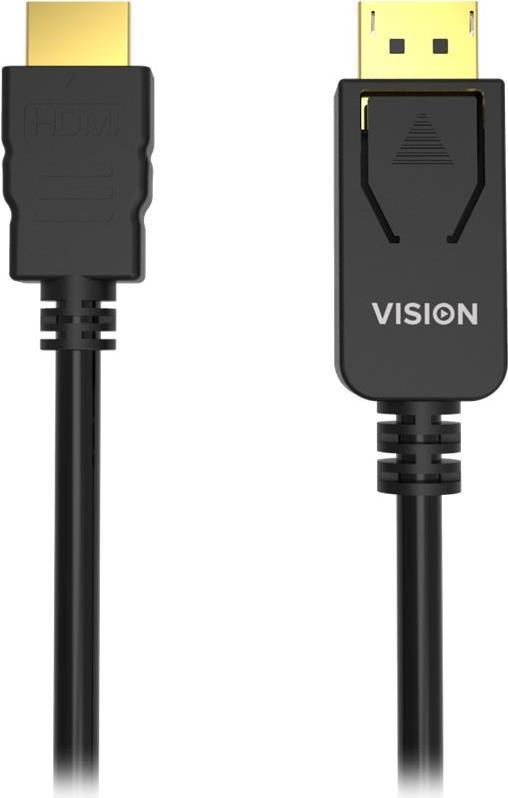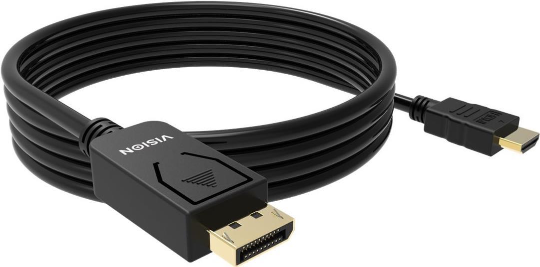 VISION - Adapterkabel - DisplayPort männlich zu HDMI männlich - 2 m - Schwarz - 4K Unterstützung