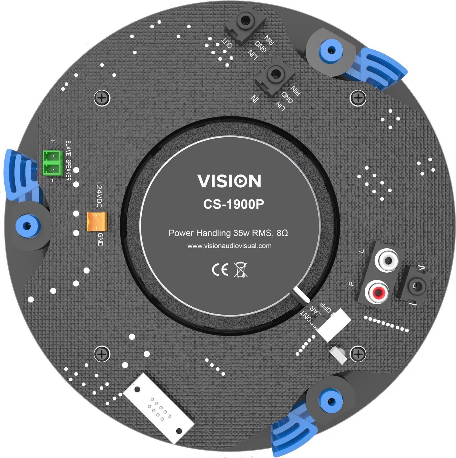 Die CS-1900P basieren auf Visions passiven Deckenlautsprechern, warten jedoch mit einem leistungsfähigen, integrierten 70-Watt-Verstärker auf. Diese kinderleicht zu bedienenden und praktisch unsichtbaren Lautsprecher in Profi-Qualität eignen sich ideal für unterteilbare Besprechungsräume oder für den Heimbereich.