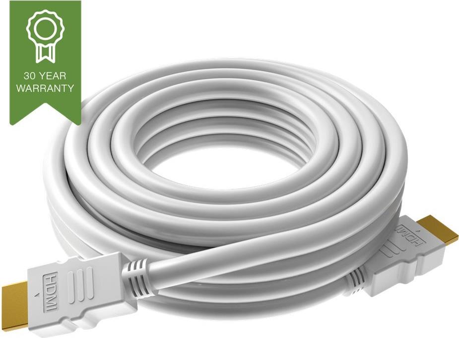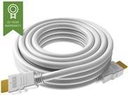 Weißes High-Speed-HDMI-Kabel mit Ethernet. Kompakter, vergoldeter Stecker. Nach Kategorie 2 geprüft.