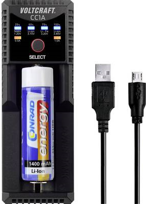 VOLTCRAFT CC1A Rundzellen-Ladegerät NiMH, LiIon, LiFePO, NiCd Mignon (AA), Micro (AAA), Baby (C), 10440, 10500, 12500, 12650, 13650, 14500, 14650, 16340 (CC1A)