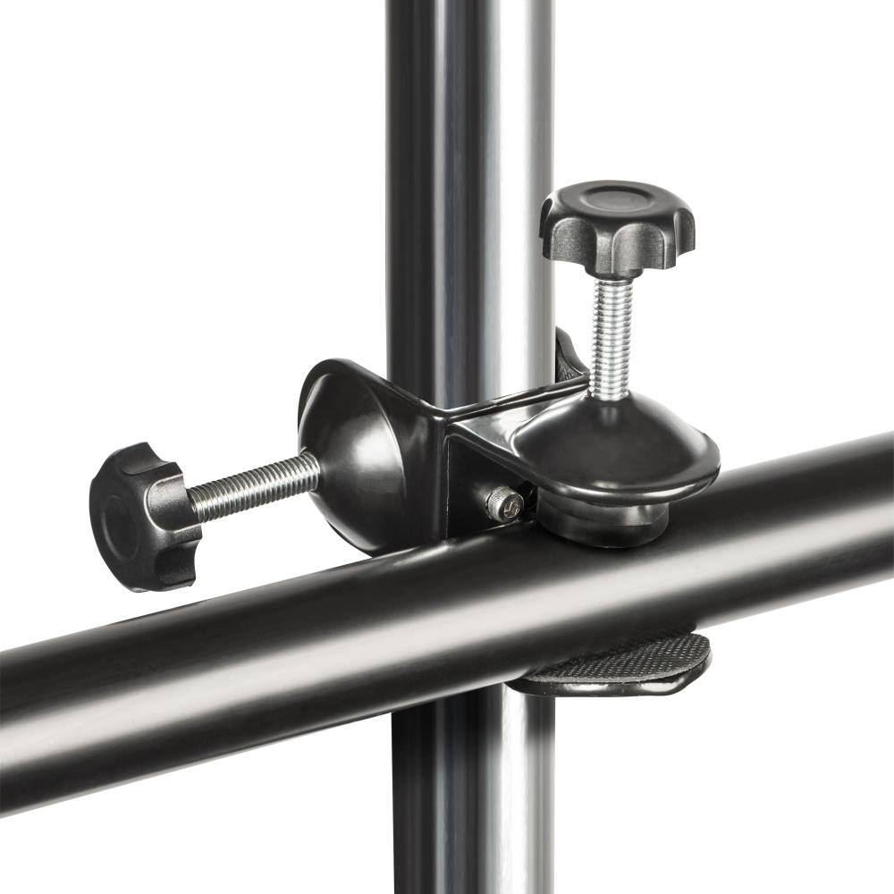 Der kleine Studiohelfer rt Ihnen die Flexibilität, die Sie im Studio benötigen und das jederzeit und überall. Bauen Sie sich einfach Ihr Studio-Gerüst nach eigenen Vorstellungen: Bringen Sie beispielsweise eine Seite an einem Lampenstativ an, um dann an der zweiten Schraubklemme eine Teleskopstange anzubringen. Oder befestigen Sie die Schraubklemme an der Platte eines Aufnahmetisches, um dann mit Hilfe einer Styoporgabel und passender Styroporplatte entsprechend abzudunkeln. Ihren Ideen sind keine Grenzen gesetzt!