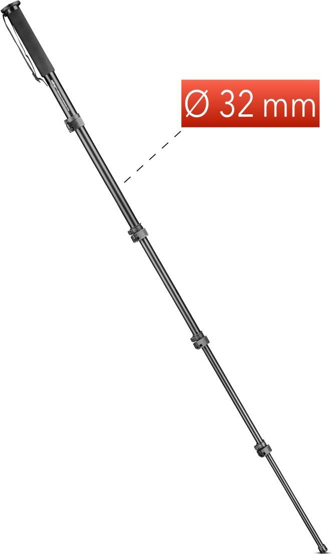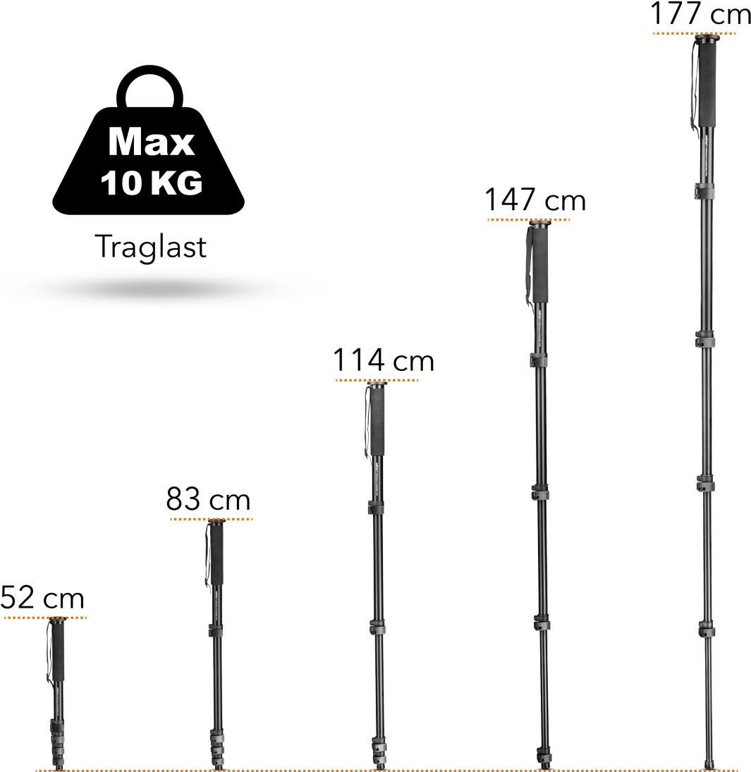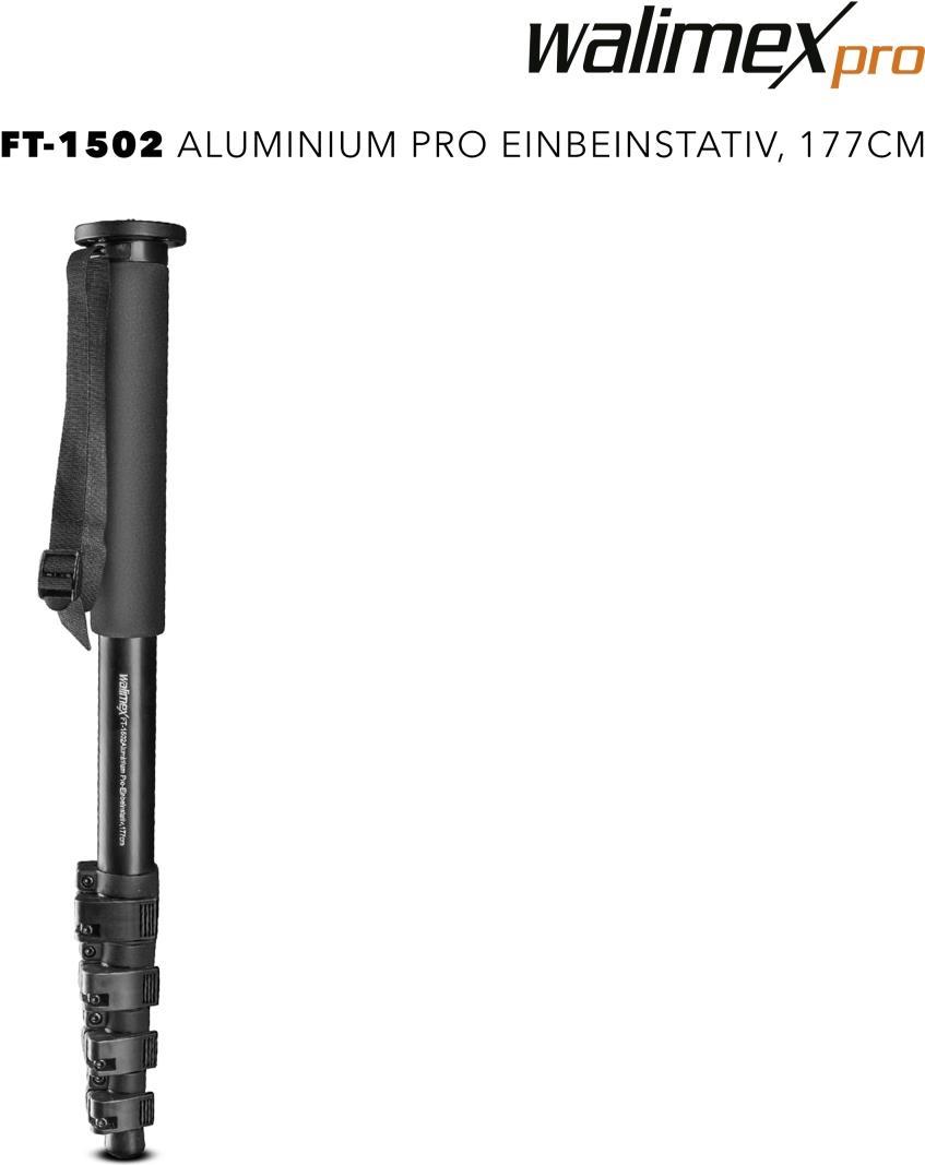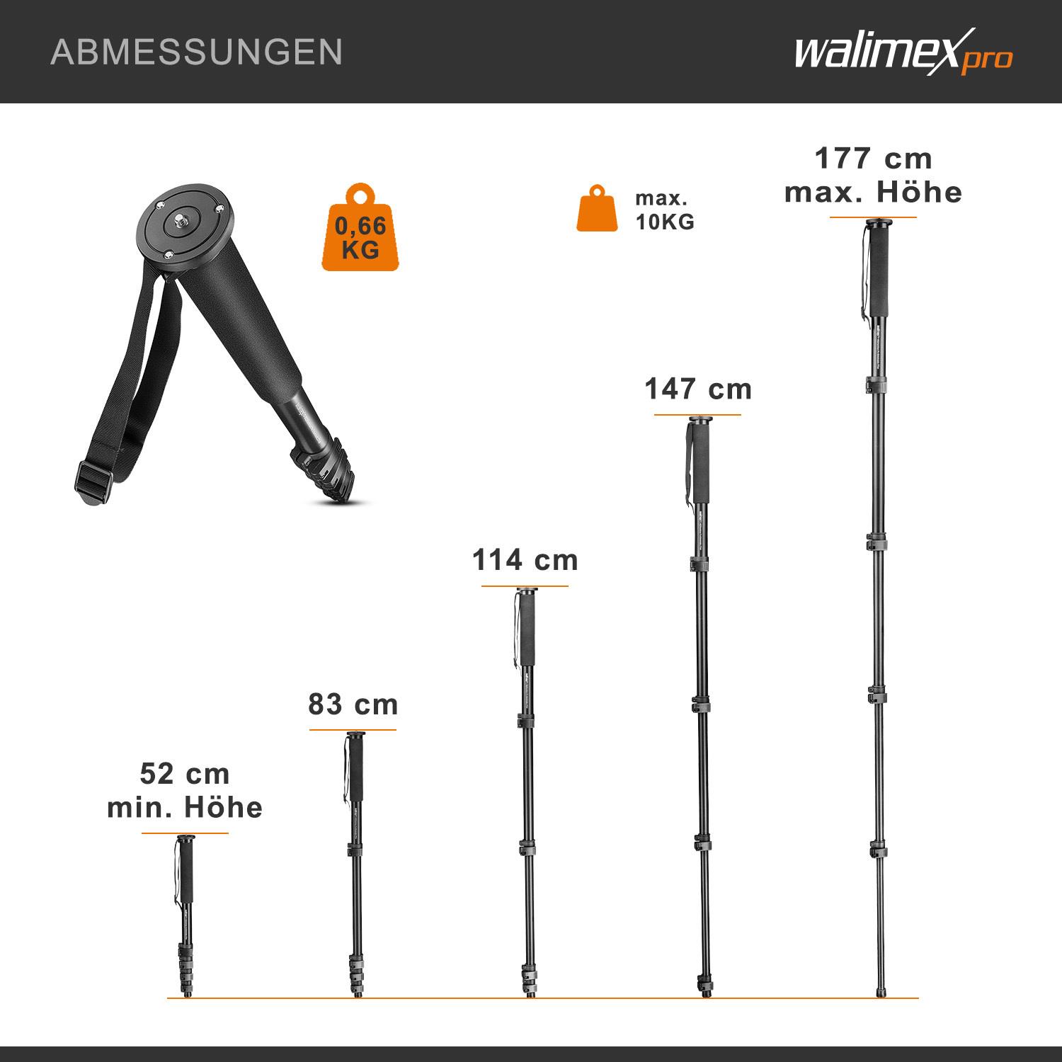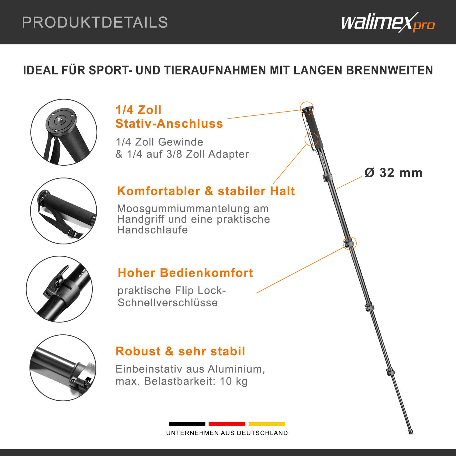 Walimex FT-1502 Pro Einbeinstativ 177cm - Stabiles Aluminium-Einbeinstativ - 10 kg Traglast - Fliplock-Schnellverschlüsse - Ideal für DSLR, DSLM und Kompaktkameras - Mit Handschlaufe und Tasche (1014775)