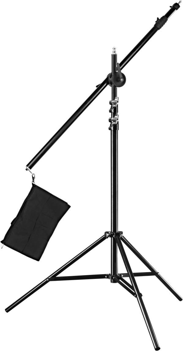 Walimex Galgenstativ mit Teleskoparm 120-220 cm und Beschwerungstasche, höhenverstellbares Lampenstativ bis 460 cm, Lichtstativ für Blitzgeräte, Softboxen, LED-Leuchten und Reflektoren (1016553)