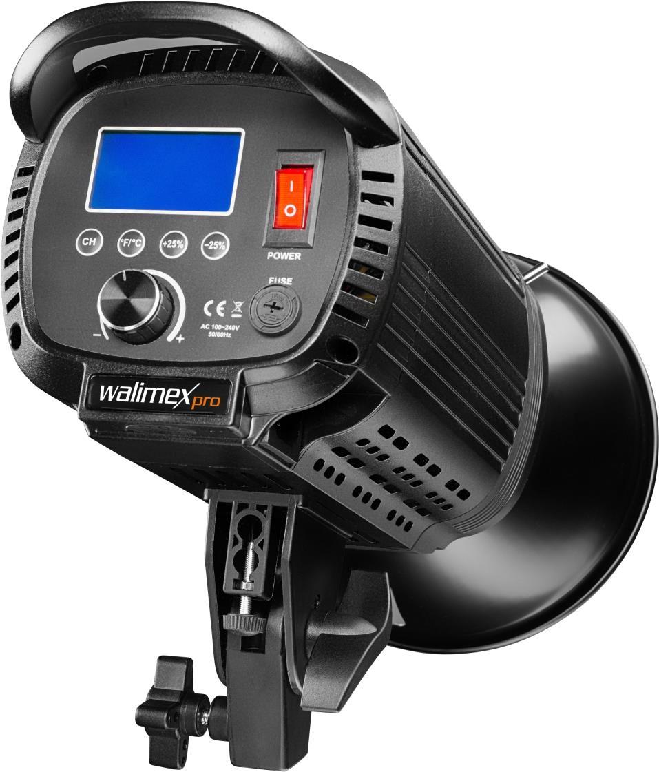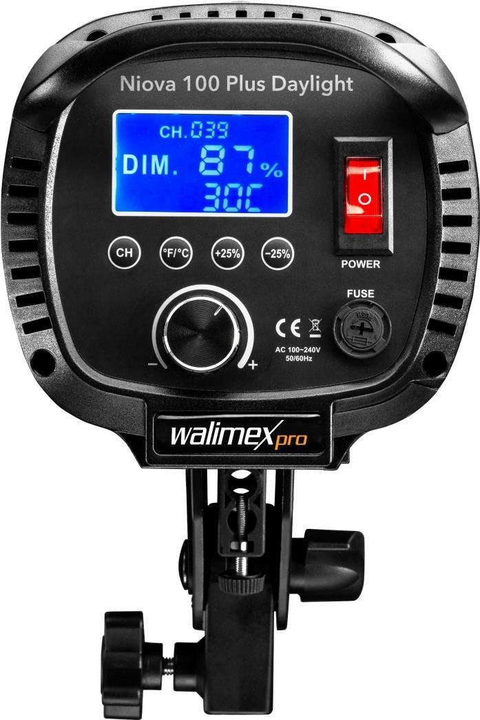 Walimex pro Niova 100 Plus Daylight dimmbare LED Videoleuchte mit Bowens-Reflektor & Soft Diffusor I Studiolicht mit COB LED-Technologie I 5600 K, CRI=93 I Leuchtstärke verstellbar von 10-100% (1022254)