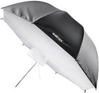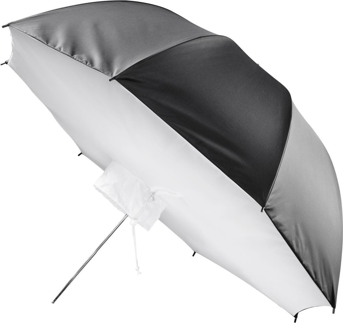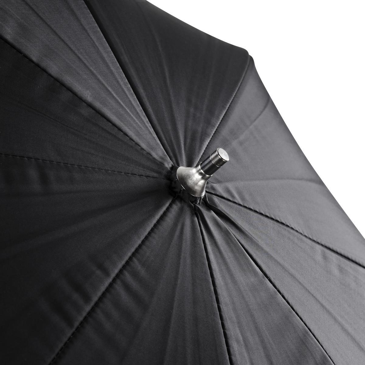 Die Schirmsoftbox ist ideal für Porträtaufnahmen und kleine Gruppenaufnahmen. Auch in der Produktfotografie ist sie sehr beliebt. Die silberne Reflexfläche sorgt dabei für eine für optimale Reflexion des Lichtes ohne weiche Lichtcharakteristik.Dank des Kordelzugs und Reißverschlusses gleichen Sie die Softbox passgenau an den Studioblitz an, wodurch ein Durchscheinen des Lichts verhindert wird. So ist die Softbox mit allen handelsüblichen Studioblitzen kompatibel.Der Schirm ist äußerst hochwertig verarbeitet und besticht mit seiner edlen Optik. Sowohl die Spitze als auch das Gestell sind aus Metall gefertigt, was für eine höhere Stabilität und somit für eine längere Lebensdauer sorgt. Das metallene Stielende ist verstärkt, wodurch es leichter in den Reflektorhalter am Studioblitzgerät eingeführt werden kann.
