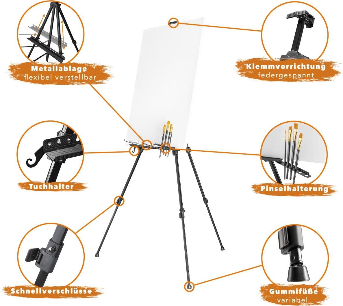 Walimex pro Staffelei XL 60-180 cm, Leinwandstaffelei aus Aluminium inkl. Transporttasche, Feldstaffelei für Leinwand bis 140 cm, Leinwandstativ mit Ablage (1021453)